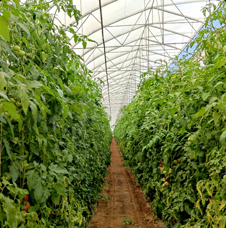 Je cultive des tomates, des concombres et des poivrons. Je suis en bio depuis 1999. Je cultive en double paroi, donc avec gain de productivité et en abri méditerranéen (serre). Planter pour avoir de beaux légumes est très difficile.